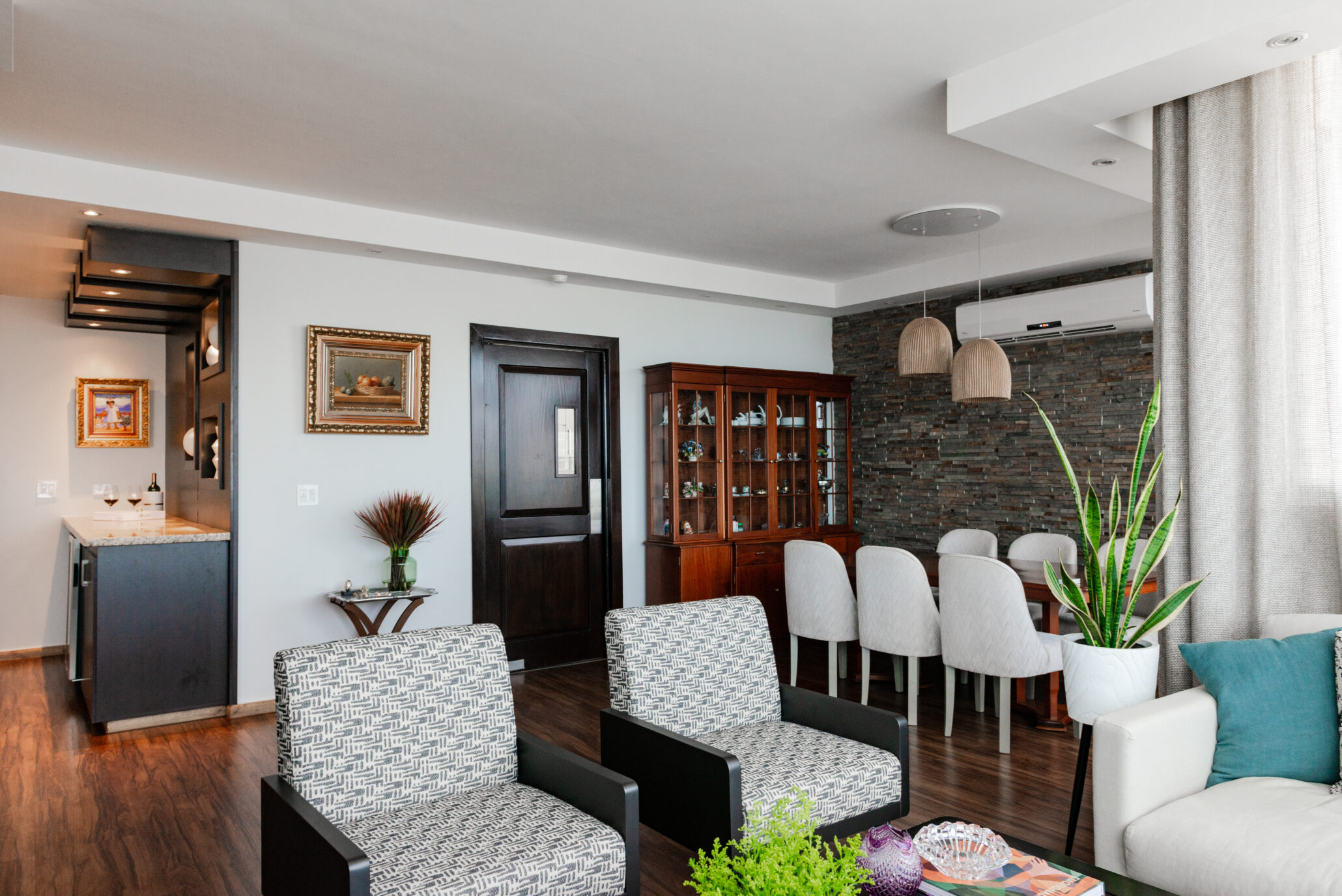 A través de una cuidadosa selección de mobiliario contemporáneo, accesorios y una nueva paleta de color en tonos fríos, logramos un equilibrio armonioso entre lo clásico y lo actual. El resultado es un estilo ecléctico, sofisticado y atemporal, donde cada pieza conversa con la siguiente, honrando el pasado con una mirada elegante hacia el presente.